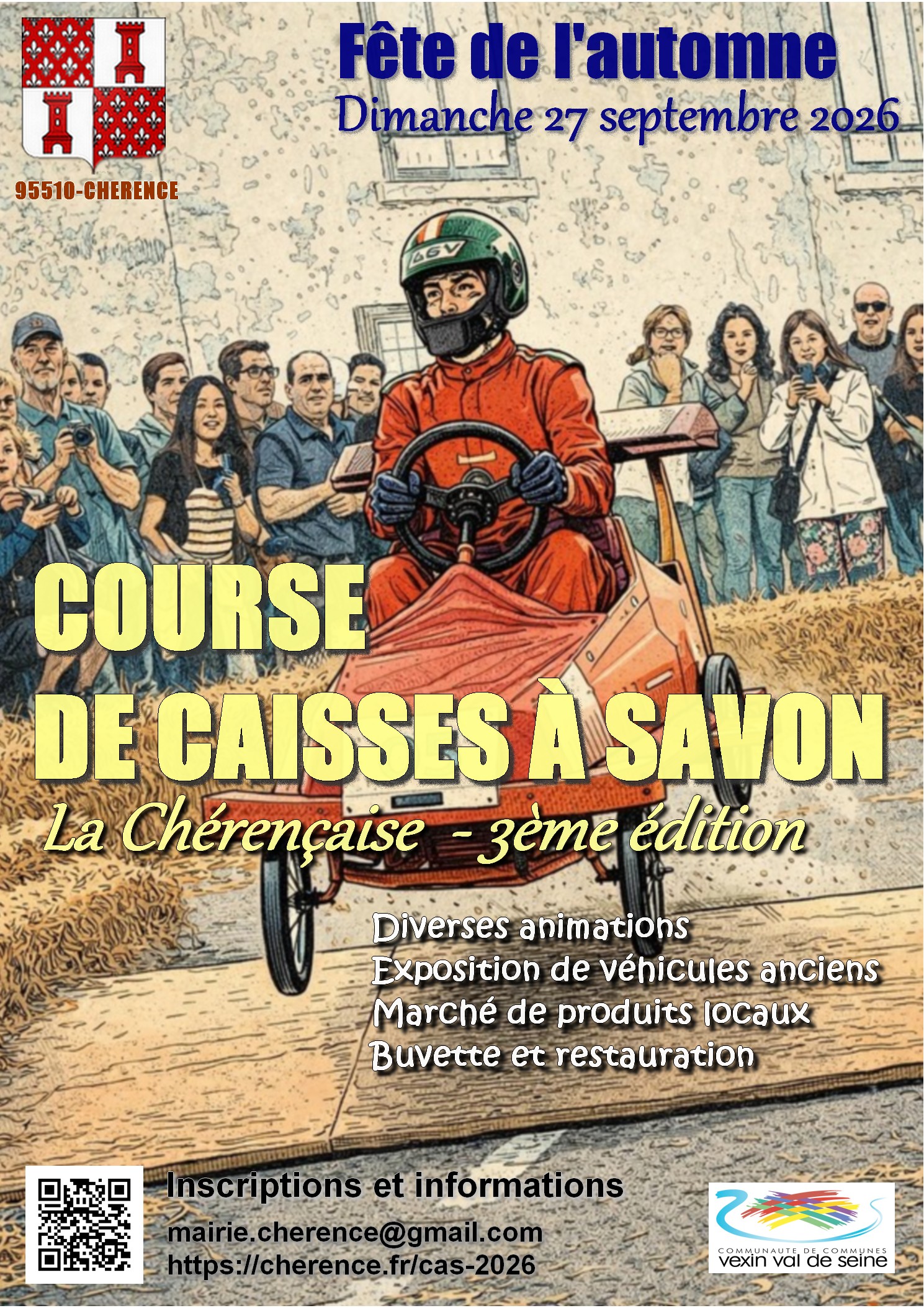 A l’occasion de la Fête de l’automne, la commune de Chérence organise la troisième édition de sa course de caisses à savon le dimanche 27 septembre 2026.